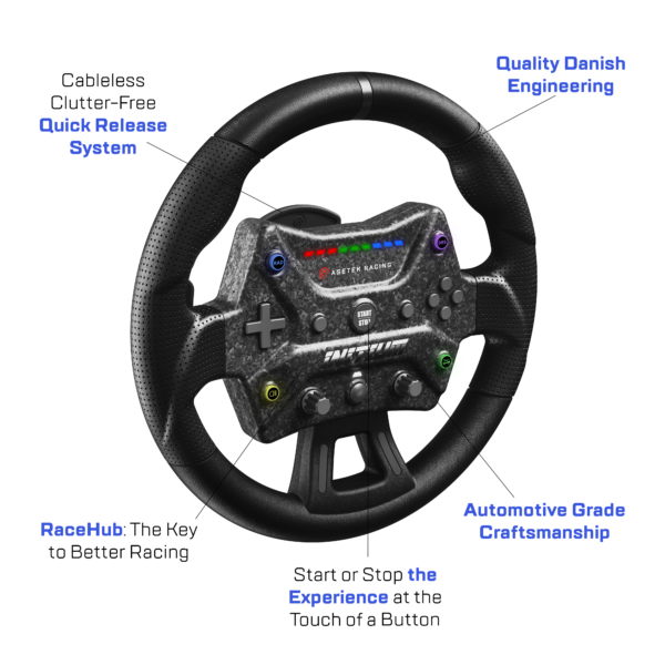 The Initium Steering Wheel brings the best of Asetek Racing peripherals to a broad audience of enthusiast racers, offering best-in-class ergonomics, reactive aRGB LEDs, and 21 input options for the ultimate control over your vehicle.