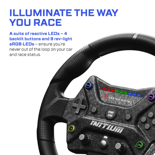 A suite of reactive LEDs keeps you fully informed: four backlit buttons and nine customizable aRGB rev-light LEDs ensure you’re always up to speed on your car’s status and race conditions.
